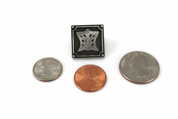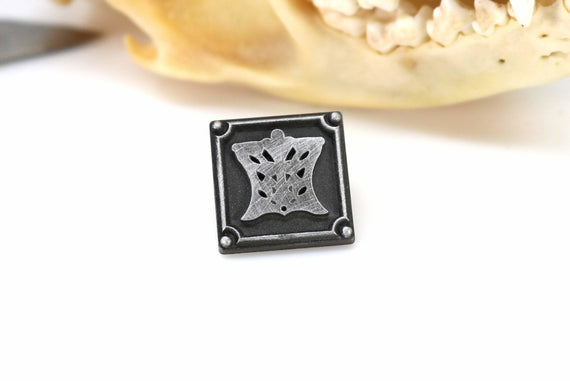 Each of our collectible pins is hand crafted with quality and care as our main priority. They start out as hand sculpted models that are then molded and cast with a special crystal resin and metal powder mix. This cast is then cleaned and aged using a method that brings out the design out to a shiny finish and leaves the piece with an antiqued feel. Each one is cleaned and secured to hypoallergenic pin using super strong adhesive, leaving the finish piece lightweight and durable!