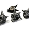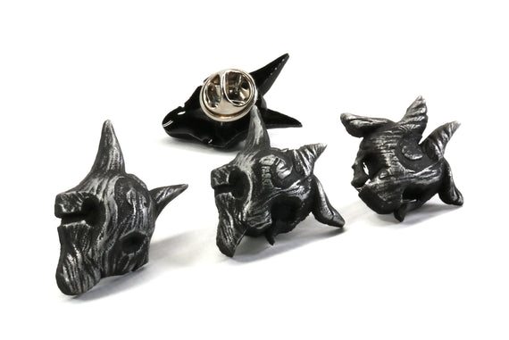Each of our collectible pins is hand crafted with quality and care as our main priority. They start out as hand sculpted models that are then molded and cast with a special crystal resin and metal powder mix. This cast is then cleaned and aged using a method that brings out the design out to a shiny finish and leaves the piece with an antiqued feel. Each one is cleaned and secured to hypoallergenic pin using super strong adhesive, leaving the finish piece lightweight and durable!