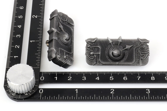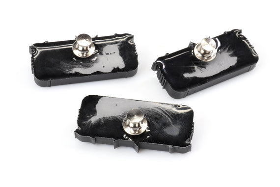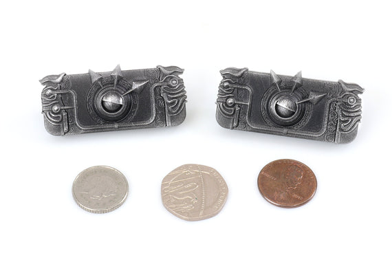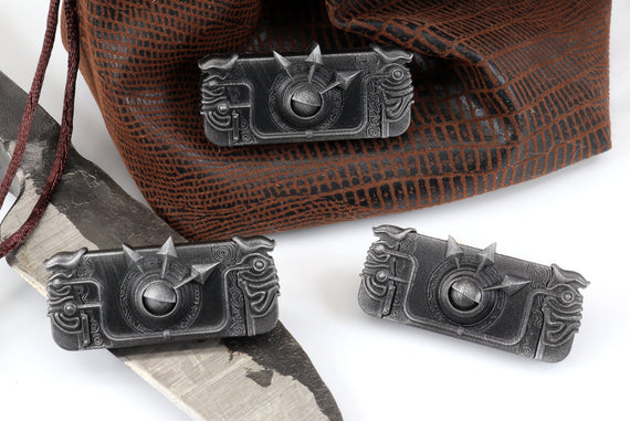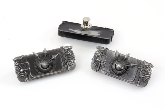 Each of our collectible pins is hand crafted with quality and care as our main priority. They start out as hand sculpted models that are then molded and cast with a special crystal resin and metal powder mix. This cast is then cleaned and aged using a method that brings out the design out to a shiny finish and leaves the piece with an antiqued feel. Each one is cleaned and secured to hypoallergenic pin using super strong adhesive, leaving the finish piece lightweight and durable!