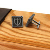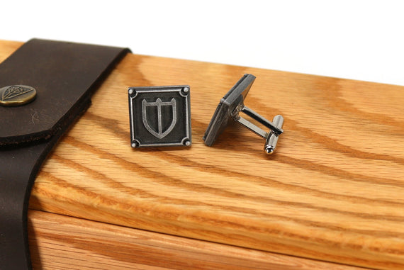 Each of our cufflinks is hand crafted with quality and care as our main priority. They start out as hand sculpted models then molded and cast with a special crystal resin and metal powder mix. This cast is then cleaned and aged using a method that brings out the design out to a shiny finish and leaves the piece with an antiqued feel. Each one is cleaned and secured to hypoallergenic stainless steel cufflinks using super strong adhesive, leaving the finished piece lightweight and durable!