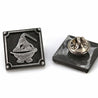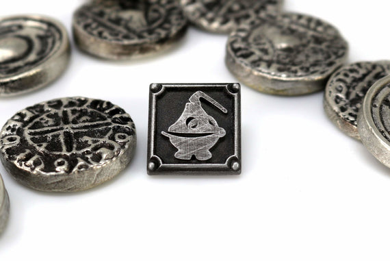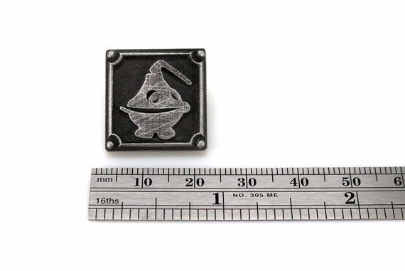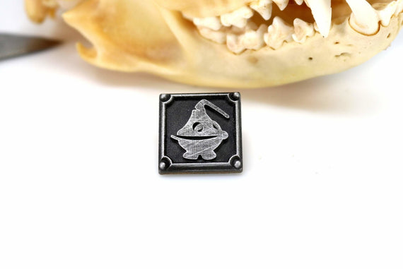 Each of our collectible pins is hand crafted with quality and care as our main priority. They start out as hand sculpted models that are then molded and cast with a special crystal resin and metal powder mix. This cast is then cleaned and aged using a method that brings out the design out to a shiny finish and leaves the piece with an antiqued feel. Each one is cleaned and secured to hypoallergenic pin using super strong adhesive, leaving the finish piece lightweight and durable!