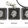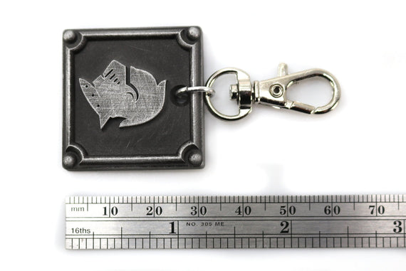 Each of our keychains are hand crafted with quality and care as our main priority. They start out as hand sculpted models that are then molded and cast with a special crystal resin and metal powder mix. This cast is then cleaned and aged using a method that brings out the design out to a shiny finish and leaves the piece with an antiqued feel. Each one is cleaned and secured to a hypoallergenic necklace or key chain using super strong adhesive, leaving the finish piece lightweight and durable!