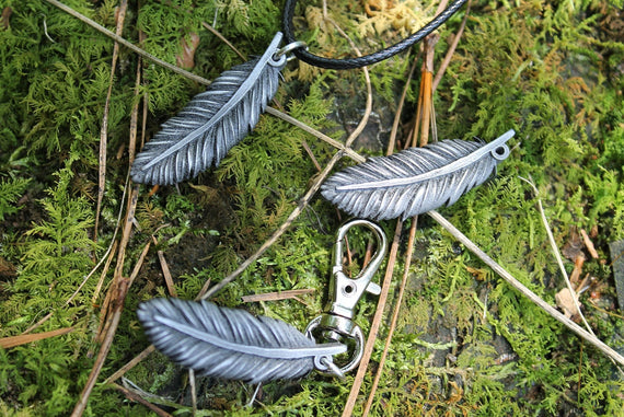 Each of our keychains and necklaces are hand crafted with quality and care as our main priority. They start out as hand sculpted models that are then molded and cast with a special crystal resin and metal powder mix. This cast is then cleaned and aged using a method that brings out the design out to a shiny finish and leaves the piece with an antiqued feel. Each one is cleaned and secured to a hypoallergenic necklace or key chain using super strong adhesive, leaving the finish piece lightweight and durable!
