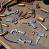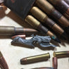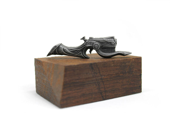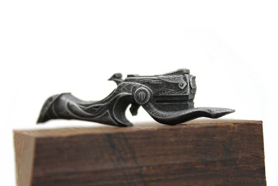 Each of our pieces are hand crafted with quality and care as our main priority. They start out as hand sculpted models that are then molded and cast with a special crystal resin and metal powder mix. This cast is then cleaned and aged using a method that brings out the design out to a shiny finish and leaves the piece with an antiqued feel. Each one is cleaned and secured to a hypoallergenic necklace or key chain using super strong adhesive, leaving the finish piece lightweight and durable!