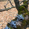 Each of our pieces is hand crafted with quality and care as our main priority. They start out as hand sculpted models that are then molded and cast with a special crystal resin and metal powder mix. This cast is then cleaned and aged using a method that brings out the design out to a shiny finish and leaves the piece with an antiqued feel. Each one is cleaned and secured to a hypoallergenic necklace or key chain using super strong adhesive, leaving the finish piece lightweight and durable!