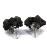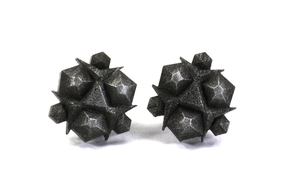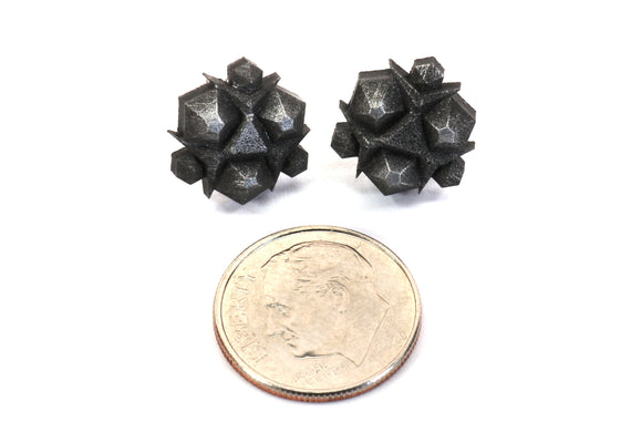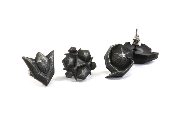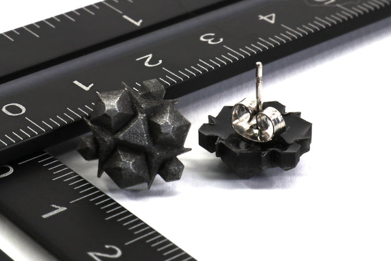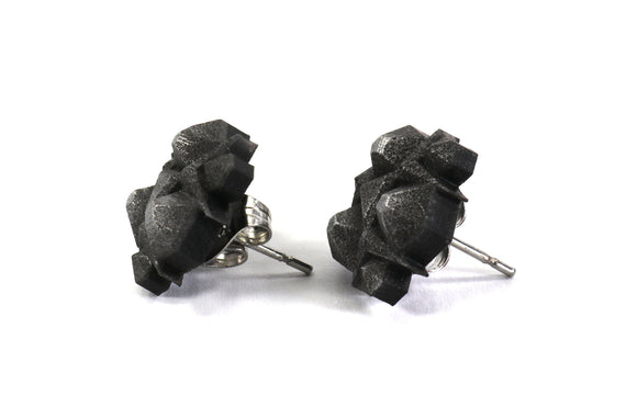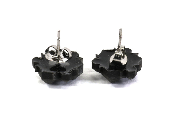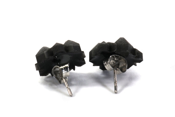 Each of our earrings is hand crafted with quality and care as our main priority. They start out as hand sculpted models that are then molded and cast with a special crystal resin and metal powder mix. This cast is then cleaned and aged using a method that brings out the design out to a shiny finish and leaves the piece with an antiqued feel. Each one is cleaned and secured to hypoallergenic stainless steel studs using super strong adhesive, leaving the finish piece lightweight and durable!