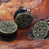 Each of our keychains and necklaces are hand crafted with quality and care as our main priority. They start out as hand sculpted models that are then molded and cast with a special crystal resin and metal powder mix. This cast is then cleaned and aged using a method that brings out the design out to a shiny finish and leaves the piece with an antiqued feel. Each one is cleaned and secured to a hypoallergenic necklace or key chain using super strong adhesive, leaving the finish piece lightweight and durable!