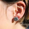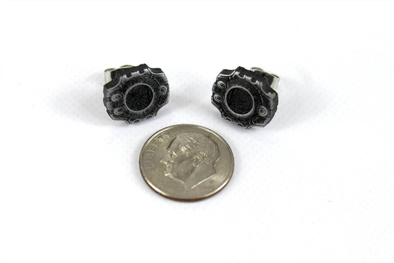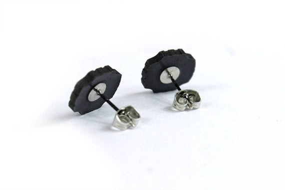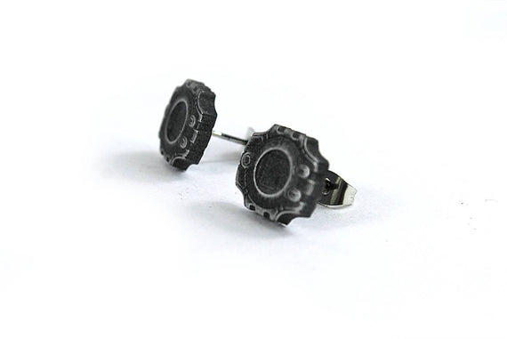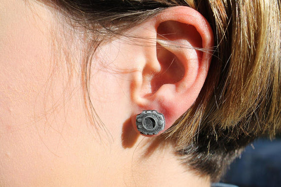 Each of our earrings is hand crafted with quality and care as our main priority. They start out as hand sculpted models that are then molded and cast with a special crystal resin and metal powder mix. This cast is then cleaned and aged using a method that brings out the design out to a shiny finish and leaves the piece with an antiqued feel. Each one is cleaned and secured to hypoallergenic stainless steel studs using super strong adhesive, leaving the finish piece lightweight and durable!