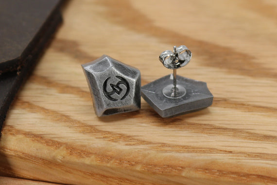 Samurai Job Icon Stainless Steel Studded Earrings Pair - FFXIV