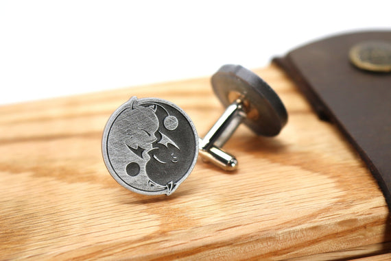 Each of our cufflinks are hand crafted with quality and care as our main priority. They start out as hand sculpted models that are then molded and cast with a special crystal resin and metal powder mix. This cast is then cleaned and aged using a method that brings out the design out to a shiny finish and leaves the piece with an antiqued feel.