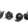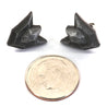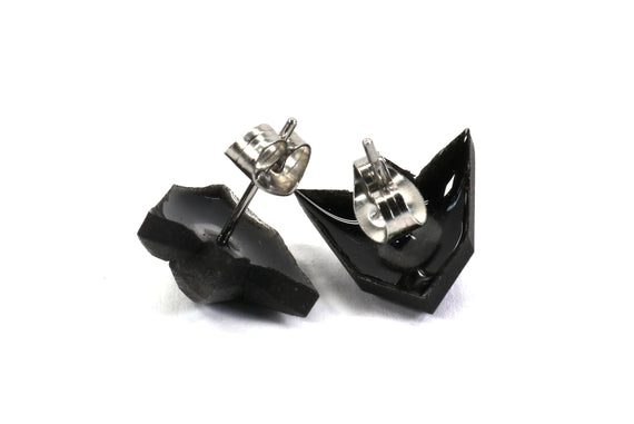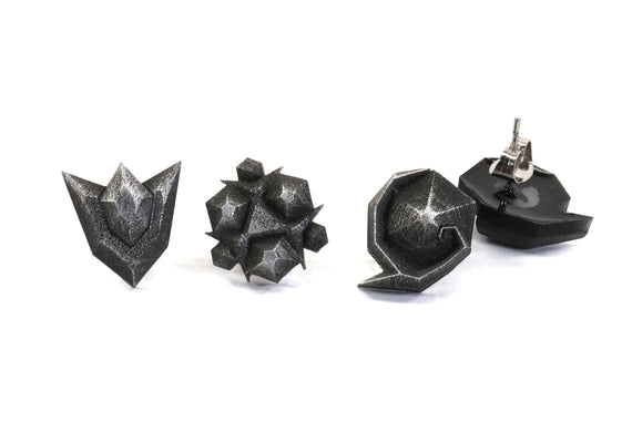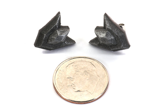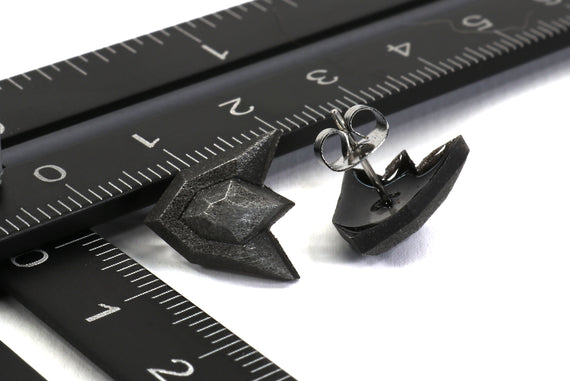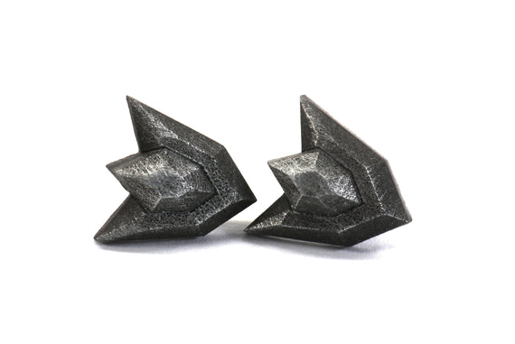 Each of our earrings is hand crafted with quality and care as our main priority. They start out as hand sculpted models that are then molded and cast with a special crystal resin and metal powder mix. This cast is then cleaned and aged using a method that brings out the design out to a shiny finish and leaves the piece with an antiqued feel. Each one is cleaned and secured to hypoallergenic stainless steel studs using super strong adhesive, leaving the finish piece lightweight and durable!