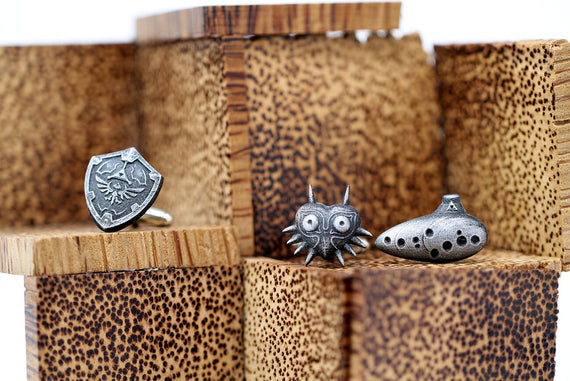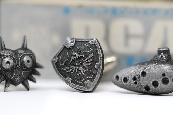 These cuff links were designed for the true Zelda lover, elegant and detailed so that you can show off your fandom perfectly. Whether closing deals on a large stash of rupees, or attending a fancy feast at Hyrule castle, these cuff-links will let you standout. Choose from the Demonic Majoras mask, the time bending Ocarina, or the ageless Hylian Shield. Whichever you choose, its sure to make heads turn!
