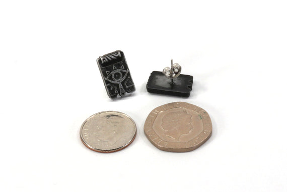Sheikah Slate Stainless Steel Studded Earrings Pair - Legend of Zelda